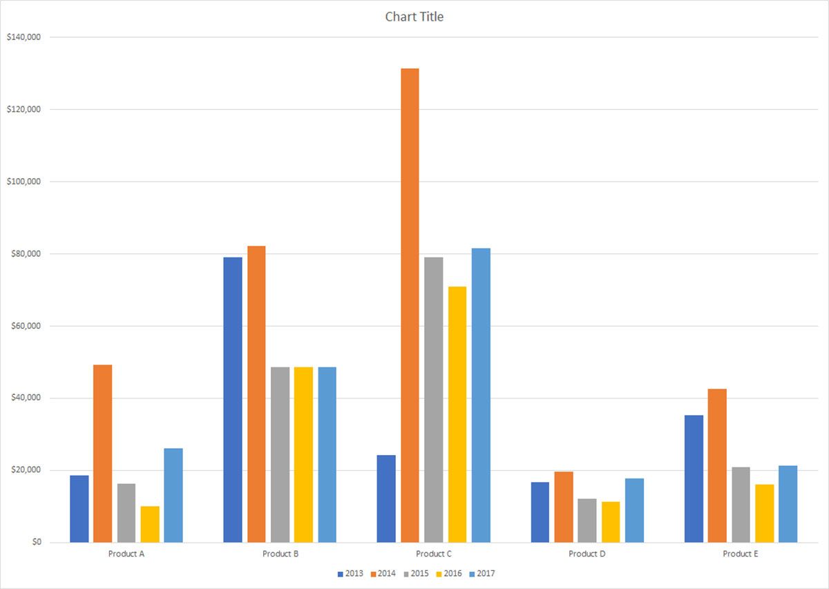 دهد. شما همیشه میتوانید با اضافهکردن جلوههای گرافیکی، نمودار خود را جذابتر و درکپذیرتر کنید. اکسل ۲۰۱۶ پنج